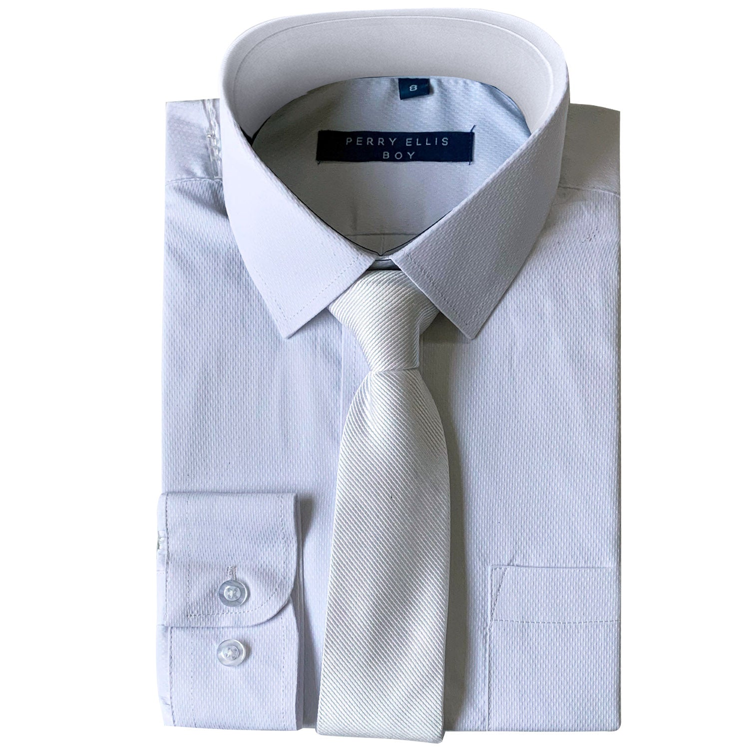 Perry Ellis Boys Dress Shirts w White Tie Solid Shirts w Colored Tie
